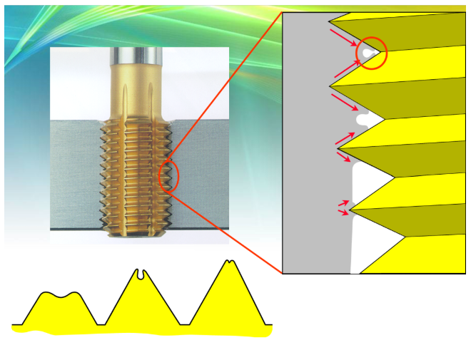可用于通孔及盲孔的加工,通過材料塑性變形形成牙型,只能用于加工塑性材料;